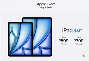 Il prezzo di listino dal quale parte iPad Air da 11″ è pari a 719 euro e si parla del taglio da 128GB mentre il nuovo iPad Air da 13″ parte da 969 euro, sempre in versione 128GB. È possibile ordinarli da oggi e saranno disponibili da mercoledì 15 maggio in viola, blu, grigio siderale e galassia.