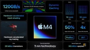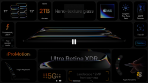 Apple non poteva poi certo dimenticarsi del proprio gioiellino, iPad Pro ed è proprio lui che riceve un importante aggiornamento. Il primo dispositivo Apple infatti sul quale vediamo il nuovo chip Apple M4 è proprio lui, che salta l’M3 per arrivare direttamente al livello successivo, per arrivare ad un processore pronto per l’intelligenza artificiale grazie alla più potente NPU mai sviluppata da Apple. Potenza che però risulta più ottimizzata che mai, infatti a parità di operazioni svolte il consumo rispetto ad iPad Pro con M2 è dimezzato.