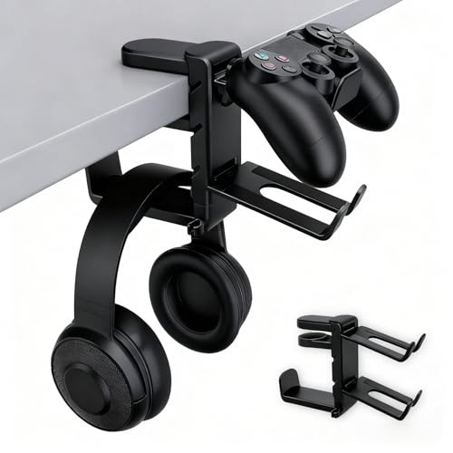 In un ambiente di lavoro o gaming la gestione dello spazio è spesso sottovalutata. Questo supporto, che si fissa sotto il piano della scrivania e gira su sé stesso a 360°, è un’ottima idea se vuoi liberare il piano dall’ingombro delle cuffie o di altri accessori che altrimenti finirebbero sul tavolo. La rotazione permette di orientare l’oggetto nel modo più comodo e il fatto che sia nascosto “sotto” dona un’estetica più pulita. Naturalmente, bisogna verificare che lo spessore della scrivania sia compatibile con il morsetto e che il peso dell’oggetto da appendere non sia eccessivo per la staffa.