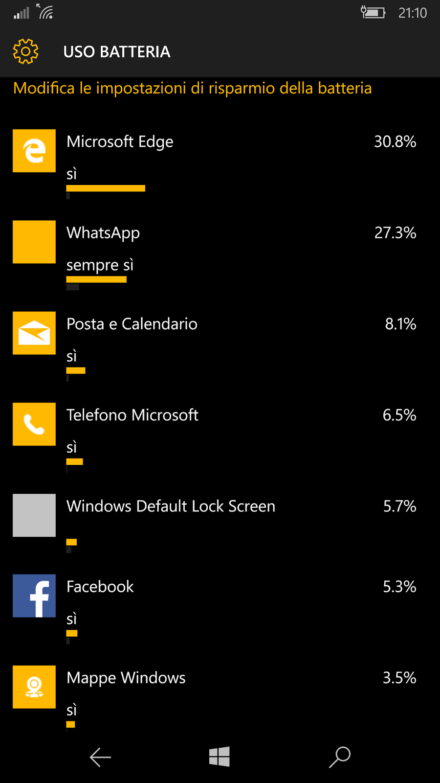 Nel frattempo al 15% attivato risparmio energetico. Ma si possono lasciare app comunque attive. Io ho lasciato Whatsapp.