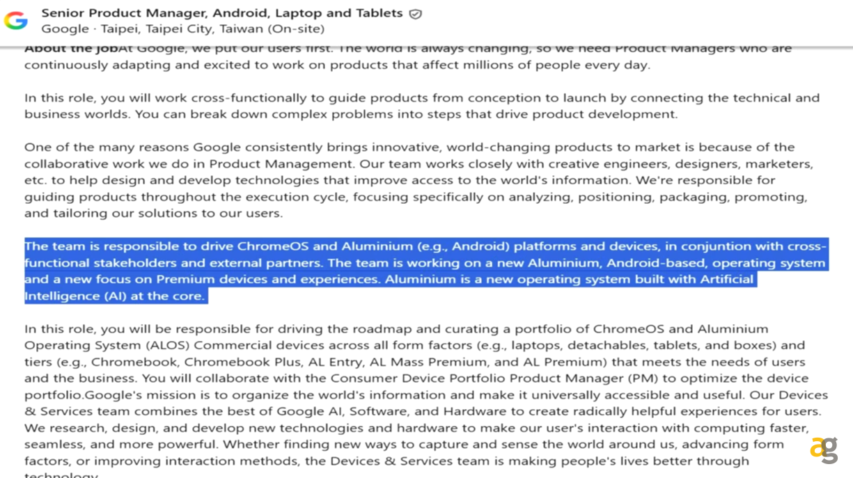Le ultime conferme arrivano da una fonte inaspettata ma estremamente affidabile: un annuncio di lavoro pubblicato dalla stessa Google. La posizione, per un Senior Product Manager, Android, Laptop and Tablets, è stata individuata inizialmente dall’insider Frost Core su Telegram e successivamente riportata da Android Authority.